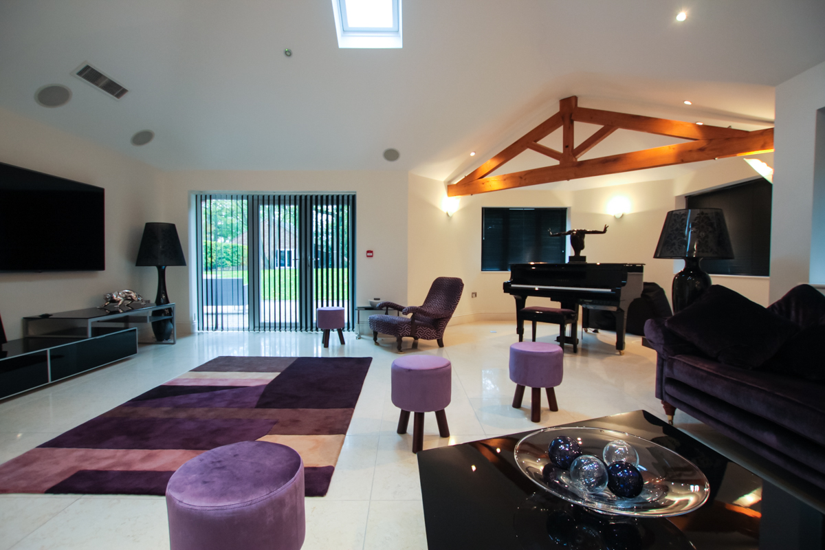 The lounge is the epitome of indulgence and elegance. Open plan, with an impressive ceiling oak beam, lush velvet sofas, Italian-style marble floor, beautiful artwork, state-of-the-art media station fitted with a 70” TV screen fully equipped with CONTROL4 media station, surround sound, complete with full SKY package (to include Sports and Movies) and Apple TV enabling you to stream music and movies from your mobile phone or iPad.