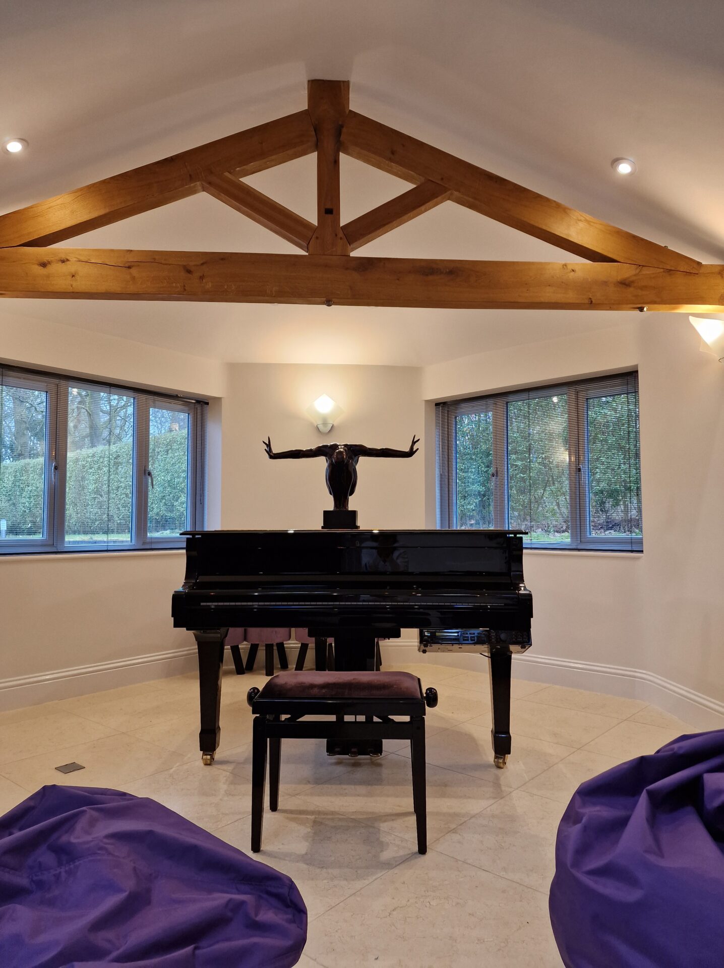 This room comes complete with dimmable remote control-enabled lighting, under floor heating and a beautiful Yamaha Disklavier mini grand-piano that you can either play yourself or indulge in listening to its very own pre-recorded melodies.